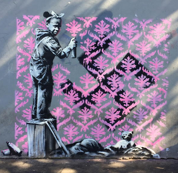Elle dit : "ça me rappel quelqu'un, en moins subtil…." avec une image et un liens sur un article de Télérama du jour même, titré: « Street art : Banksy envahit Paris par surprise, la chasse aux trésors est lancée. ». Waow! Elle ne m’envoie pas ce liens parcequ’on fait partie du fan club de Banksy, mais parcequ’il y a du papier-peint sur l’image. «L’enfoiré !?» que je me dis, sans même lire l’article.