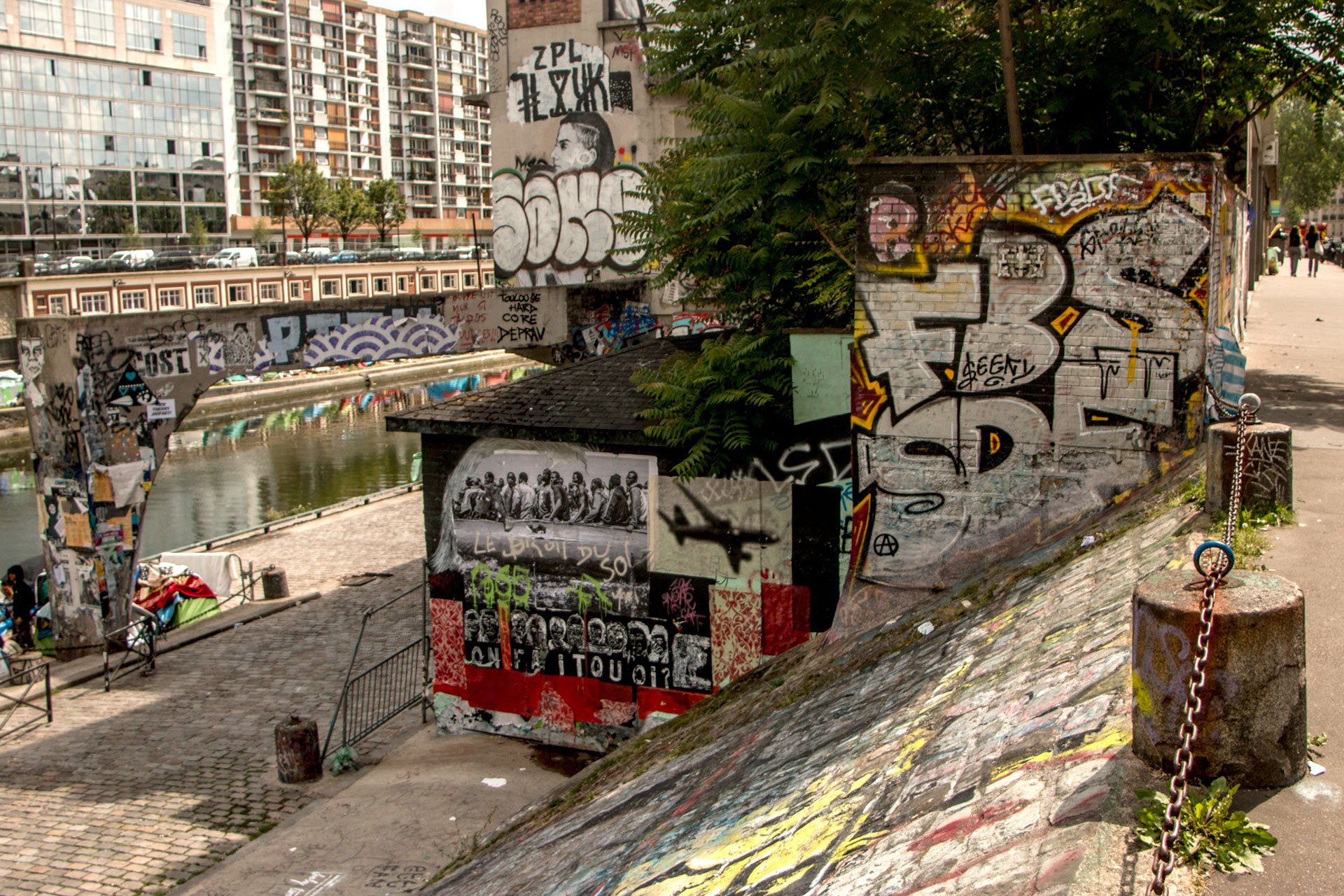 Ce territoire est convoité, c’est l’entrée du point P au bord du camp de réfugiés à Stalingrad. Pourtant, deux mois après, elle existe encore : « cela signifie que l’oeuvre est respectée par les autres » me dit Rafael. Rafael sait de quoi il parle, il connait les codes… depuis le temps qu’il pratique son art dans les rues de tous les continents.